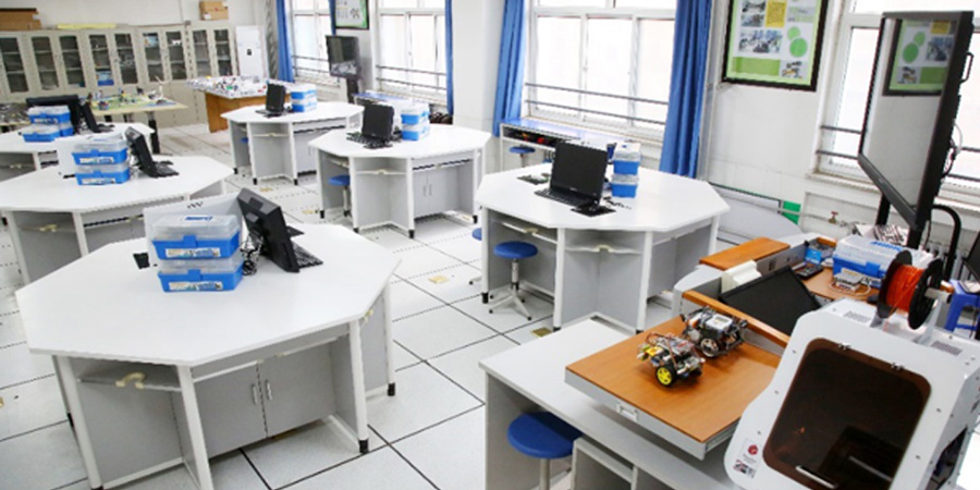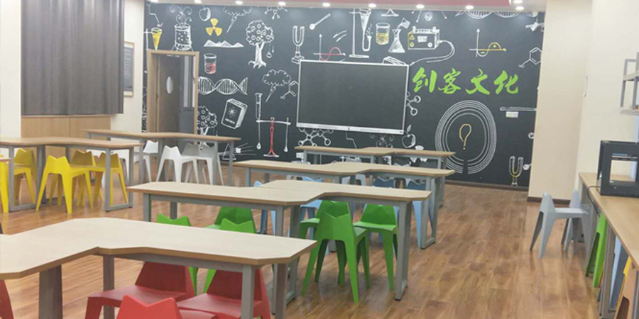 阿斑兔將機器人、創(chuàng)客、3D打印、航模等融為一體,研發(fā)、設計具有情景體驗、創(chuàng)意生成、原型制作、展示交流等多功能為一體的機器人教育教學場所,即創(chuàng)新教育實驗室,針對不同年齡段學生的特點、學校學情等,為其提供足夠的空間、設備和完善的課程體系。